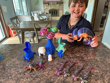 At Drinks 'n Prints, the mission is simple: make cool stuff, sell it with a smile, and maybe throw in a Gatorade. Every 3D print is made by a kid who loves creating, selling, and sharing his favorite designs. Whether it’s a dragon, a vase, or a mystery thingamajig, you never know what you’ll find but it will definitely be fun.